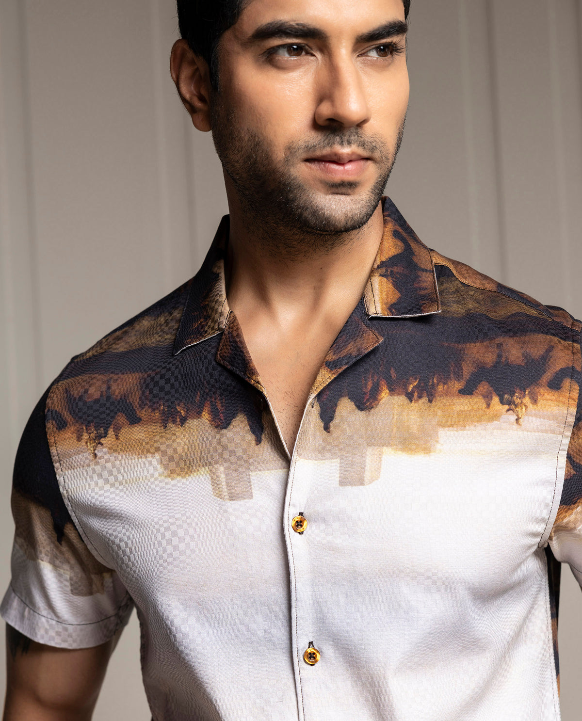 MODERN - GRAY - RESORT COLLAR - DIGITAL PRINT PARTY WEAR SHIRT