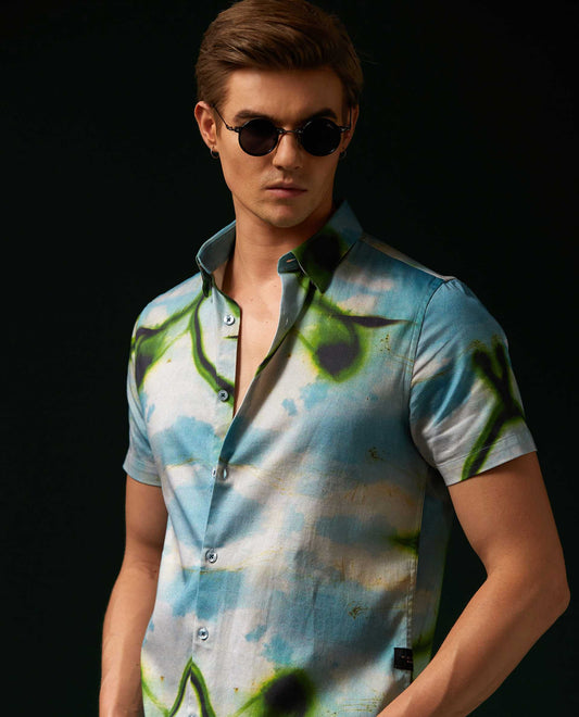 TRANCE - GREEN - DIGITAL PRINT PARTYWEAR SHIRT