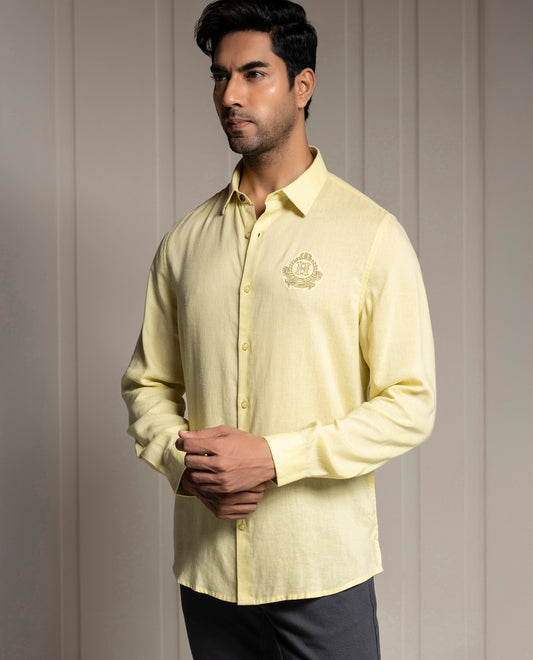FEEL - YELLOW - LUXURY LINEN - EMBROIDERED SHIRT