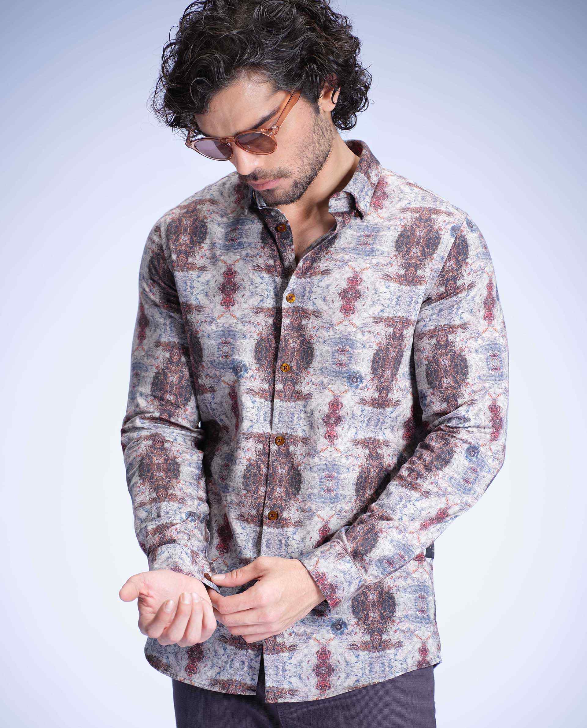 KELOY - GRAY - DIGITAL PRINT PARTYWEAR SHIRT