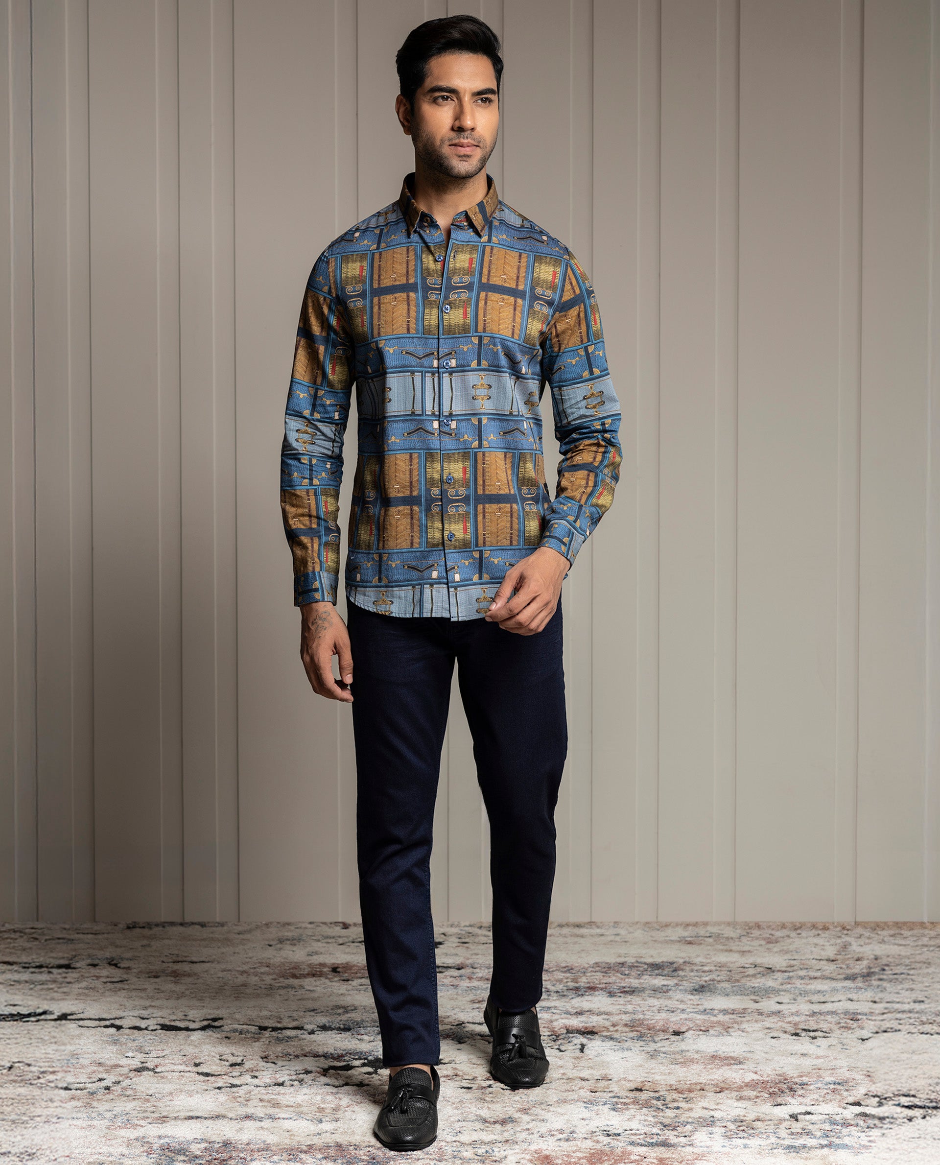 VOYAGE - BLUE - DIGITAL PRINT PARTY WEAR SHIRT